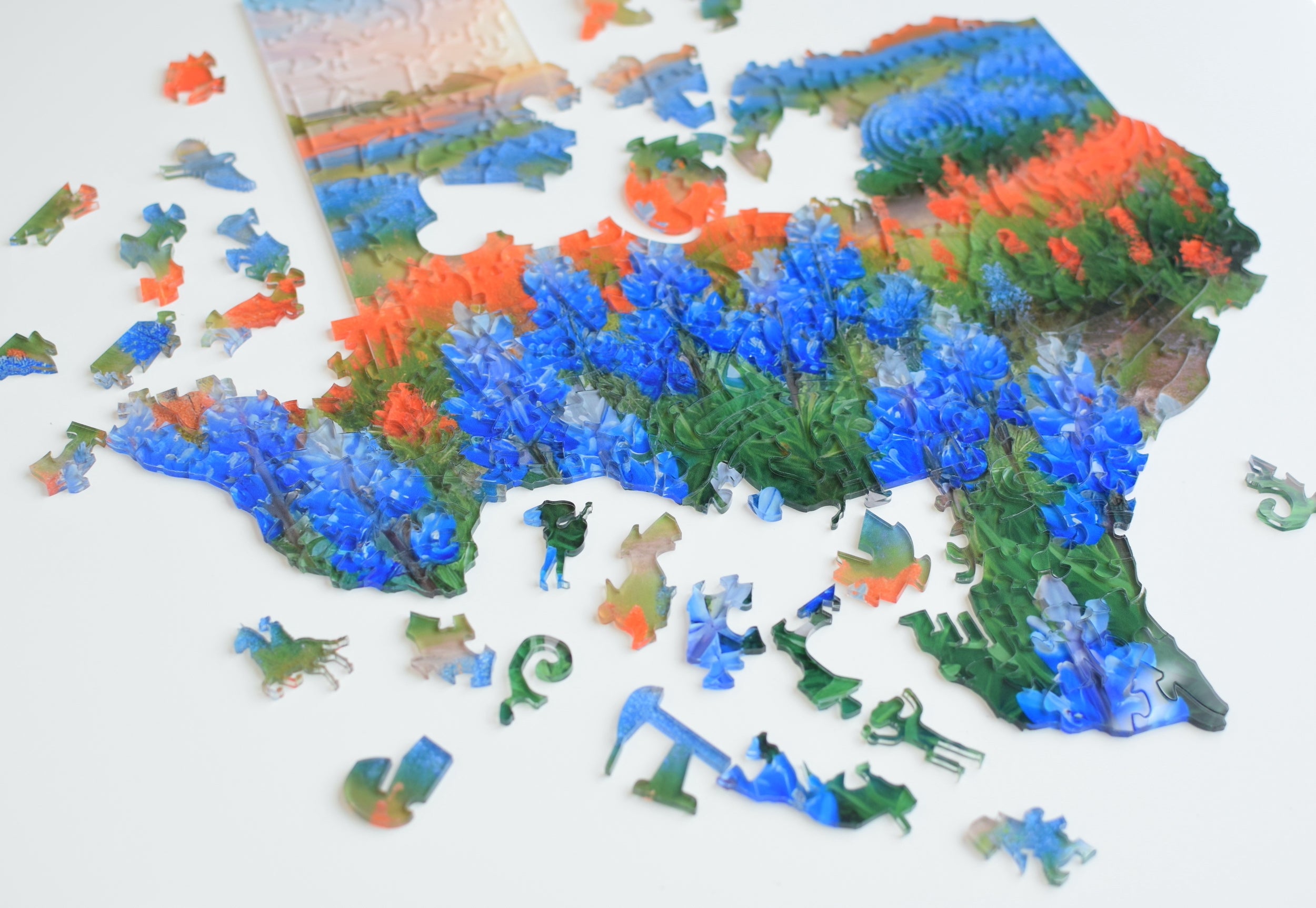 Our "A Winter Stroll" acrylic puzzle has been custom designed and produced by us.