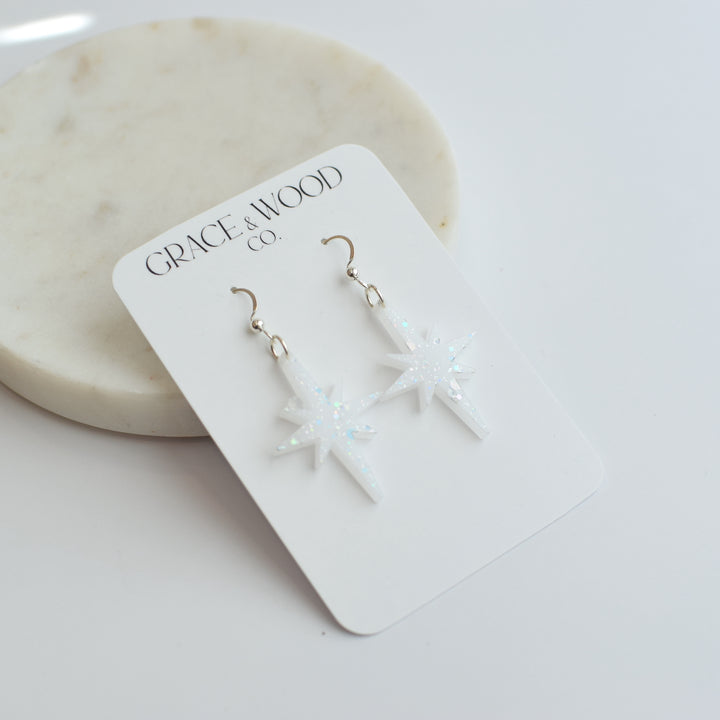 Iridescent Snow Acrylic Star of Bethlehem Earrings